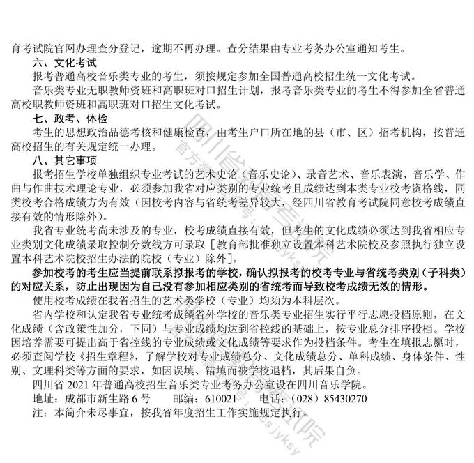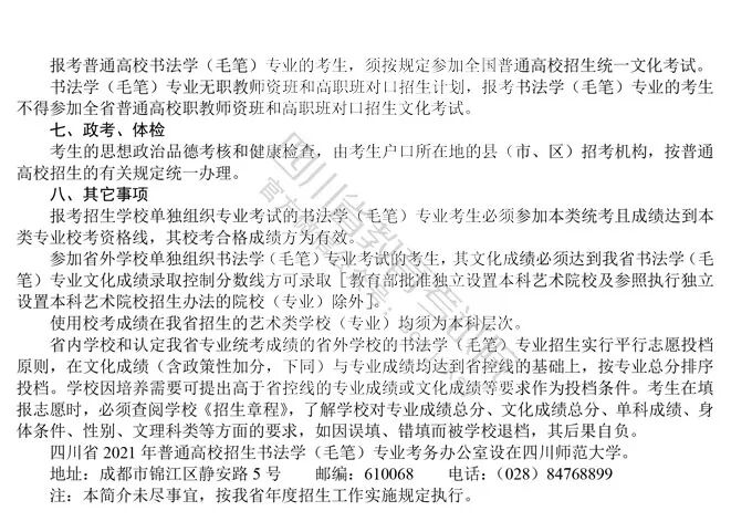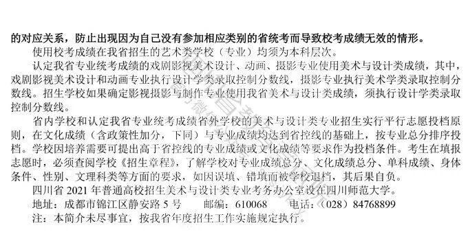 所有拟享受普通高校招生录取照顾政策(以《四川省2021年普通高等学校招生实施规定》为准)的考生均须就其照顾项目进行申报。在规定时间内未按要求申报的考生视为自愿放弃,责任由考生自负。申报办法将在省教育考试院官方网站公布。